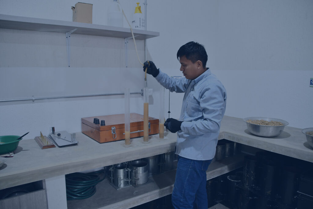 En nuestro servicio de control de calidad, realizamos ensayos de laboratorio en suelos y agregados pétreos empleados en la construcción de obras civiles, utilizando equipos calibrados y cumpliendo con los estándares de la normatividad colombiana (INVIAS, NTC, NSR-10), asegurando así la integridad y durabilidad de las estructuras.